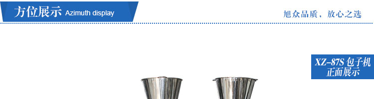 XZ-87S型雙餡斗全自動包子機是在XZ-87全自動包子機的基礎上,增設了一個不銹鋼餡斗設計,可以更快速地更換不同餡料,從而提高了工作效率,而且性能更穩(wěn)定,使用壽命更長。