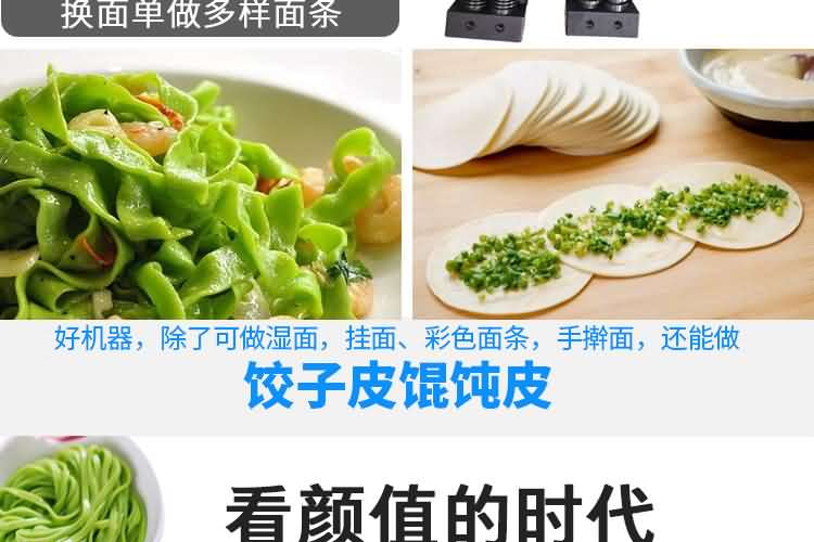 以上噴塑鐵外殼面條機(jī)不帶疊皮功能,電壓都是380V,常規(guī)機(jī)型,可根據(jù)客戶要求添加組數(shù)和寬度尺寸!