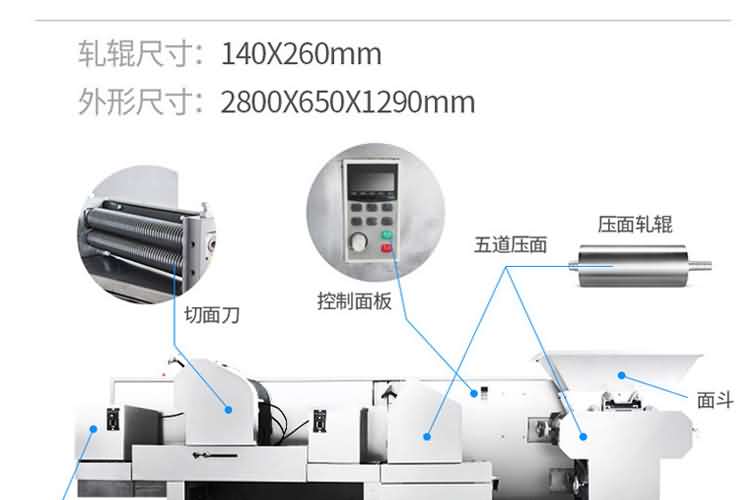 MT6-280面條機(jī) (掛面機(jī)或濕面機(jī)) | 外形尺寸:2800×640×1400mm 產(chǎn)量:260kg/h 軋輥:98×300mm 功率:4kw 軋輥組數(shù):6組 機(jī)重:700kg | 鐵外殼 |