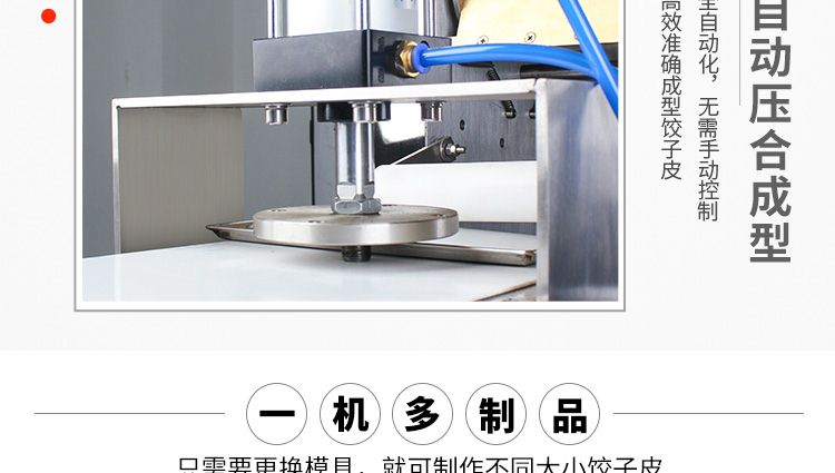 JGB-90型餃子皮機(jī)是我公司開(kāi)發(fā)生產(chǎn)的先進(jìn)餃子皮生產(chǎn)設(shè)備??梢院?jiǎn)單更換模具(可根據(jù)客戶(hù)定制不同形狀、尺寸的模具),本設(shè)備采用氣缸運(yùn)動(dòng)。本廠(chǎng)生產(chǎn)的90餃子皮機(jī),采用多道壓面輥壓面,壓面效果優(yōu)異,壓出的面皮筋道,進(jìn)一步提高所包出的餃子口感。
