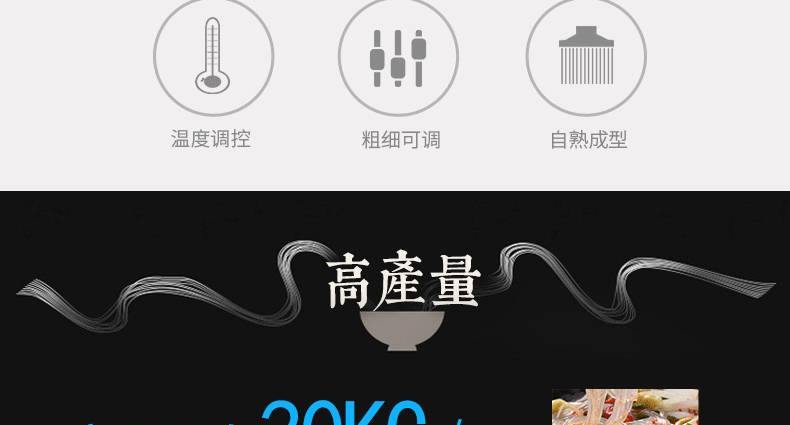 改進型不銹鋼米粉、米線專用機,裝有自動溫空裝置,整個生產(chǎn)過程設備均在恒溫狀態(tài)下運行,自動化程度高,操作簡單,l人即可生產(chǎn)??缮a(chǎn)米粉、米線、桂林米粉、過橋米線、年糕、糍粑等產(chǎn)品。各種形狀都可生產(chǎn)(圓、扁),加工食品外表光滑,厚薄、寬窄、粗細均勻可調,筋軟適度,有彈性,口感柔軟、味道純正。