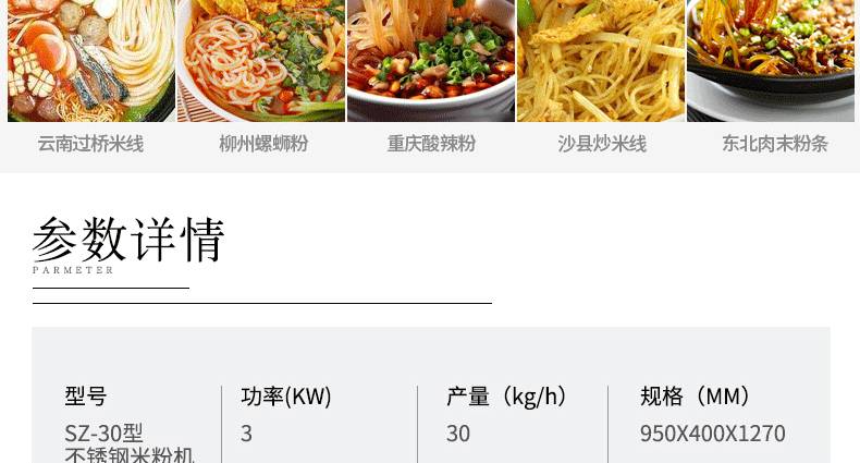 SZ-30不銹鋼米粉機,可生產(chǎn)米粉、米線、桂林米粉、過橋米線、年糕、糍粑等產(chǎn)品。各種形狀都可生產(chǎn)(圓、扁),加工食品外表光滑,厚薄、寬窄、粗細均勻可調,筋軟適度,有彈性,口感柔軟、味道純正。