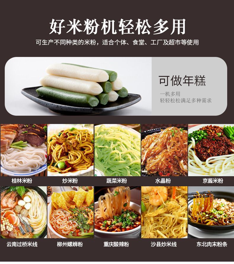 ◆ 米粉機成型米粉久煮不斷、口感爽滑、營養(yǎng)豐富。