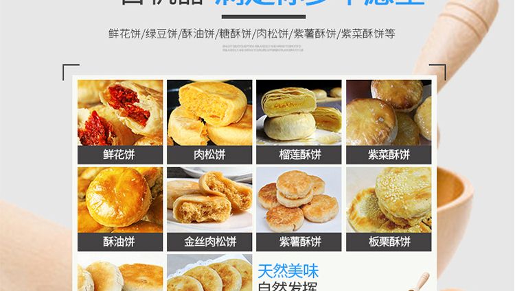 XZ-15C三道搟面酥餅機,仿手工制作面食產(chǎn)品的機型,占地面積小,重量輕,運用搟面杖壓面和打擊面團(tuán),以保證高面筋性和面帶的密度,并綜合考慮面食的口感而研發(fā)??缮a(chǎn)東北糖酥餅,東北大香酥餅,蘇式月餅,芝麻餅,鮮花餅,老婆餅。購機免費提供工藝技術(shù)
