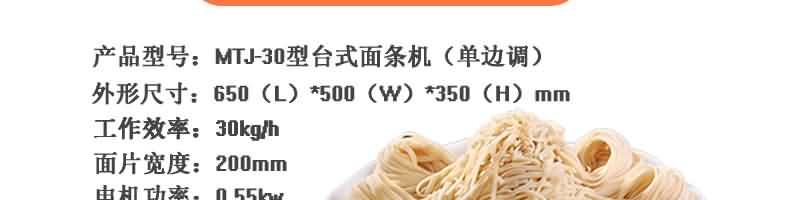 | 型號 | MTJ-30型臺式面條機(單邊調(diào)) |