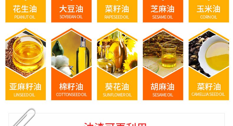 芝麻、菜籽、葵花籽、花生、大豆、山茶籽等多種原料(客戶榨山茶籽和硬物料推薦用這款如果榨花生菜籽等高油較軟的物料請推薦-4設(shè)備)