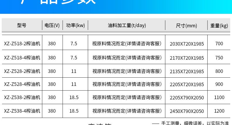 重要提示:離心濾油機建議配XZ-LL100(離心濾油機需要加鹽水濾油,該機通過高速旋轉(zhuǎn)產(chǎn)生離心力,使比重不同的液體與固體自動分離,從而達到油渣分離。),正壓濾油機建議配XZ-ZL2(正壓濾油是與空氣壓縮機組合,如果給客戶配正壓濾油機需要買個空壓機。正壓濾油油桶內(nèi)的毛油處于密閉狀態(tài)時,壓縮空氣送入桶內(nèi)形成一定壓力,使其強行通過濾布。)榨油機如有榨較硬的物料如山茶籽一定要用518以上而且是-2的設(shè)備(客戶榨山茶籽和硬物料推薦用-2設(shè)備,如果榨花生菜籽等高油較軟的物料請推薦-4設(shè)備)。