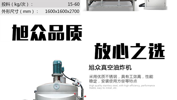 作者:杭州旭眾發(fā)布時間:2017-04-15 11:42查看數(shù):您當前的位置:首頁>>產(chǎn)品展示>>油炸機和榨油機系列>>真空油炸機