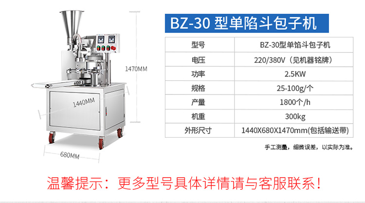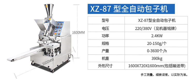 XZ-86型全自動包子機,可生產(chǎn)各種肉包、菜包、肉菜包、小籠包、湯包、水晶包、圓饅頭、奶黃包、豆沙包、叉燒包、南瓜餅、煎堆等十幾種包餡制品。適用于賓館、飯店、學(xué)校、機關(guān)企業(yè)食堂、饅頭或包子加工廠、早餐工程店及速凍食品廠等單位。可滿足不同客戶群體。免費提供工藝技術(shù)。免費上門培訓(xùn)指導(dǎo)安裝。
