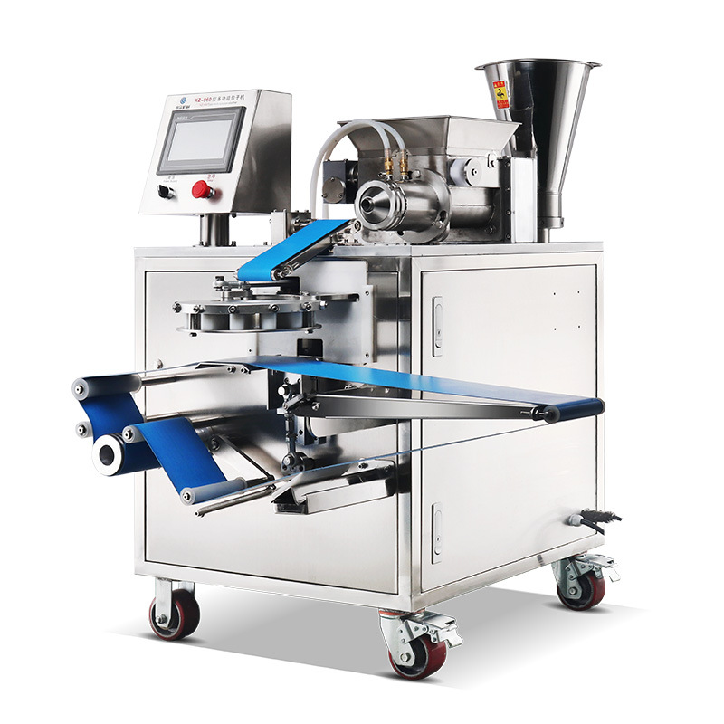 XZ-960多功能包子機采用新設(shè)計出面系統(tǒng),帶有輔助撥面裝置投面后無需重復(fù)使用手壓面/推面,有效提高工作效率/預(yù)防安全隱患;絞龍采用新概念,減少擠壓次數(shù),有效保護面筋、面團不發(fā)熱,保證面皮的口感;做湯包時,皮可更薄,面皮里外更光滑(可當氣球吹大)有效保護餡料里面的湯汁不會漏出或被吸收;出面斗帶有自動恒溫制冷系統(tǒng)最低溫度可達2℃ ,冷媒:R134A(特殊要求可按要求定制)(若定制,貨期增加20天工作日);操作簡單易懂,拆裝簡單,清洗方便;適合產(chǎn)品范圍:湯包,小龍包,速凍包,生煎包,發(fā)面包子,各類餡料包子等產(chǎn)品