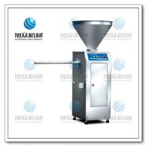 XZ-I小型自動定量灌腸機該機使用優(yōu)質(zhì)不銹鋼制造,符合食品機械的要求,只需1人操作,特別適合中小型肉食加工廠使用,以各種畜禽類肉糜為原料的香腸、火腿腸、熱狗等,可以灌制定重量單腸,也可連續(xù)灌制長腸,單腸重量在50-1000克之間,有刻度連續(xù)可調(diào),定量準(zhǔn)確,誤差<2%,料斗一次裝料57升。特點是連續(xù)作業(yè),加料時不需停機,生產(chǎn)效率高,每小時達100-500千克,工作結(jié)束后清洗方便,整機重量僅130千克,移動方便,機腳可調(diào)。