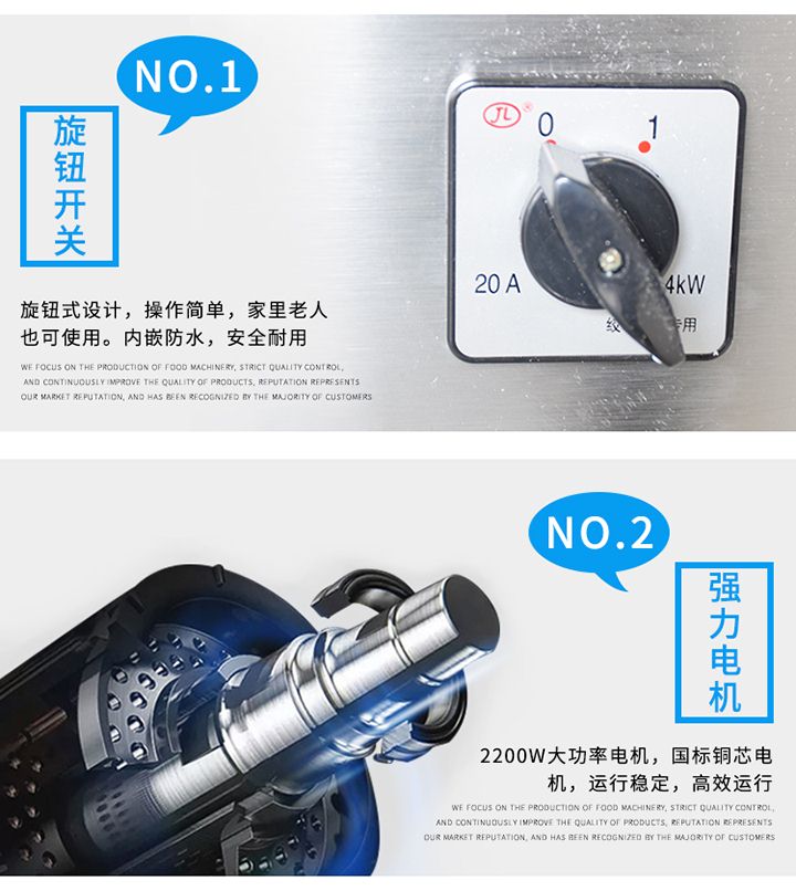 XZL-22A絞肉機(jī)吸取同行之優(yōu)點(diǎn),改進(jìn)新型絞肉切肉機(jī)械,它能切豬肉、羊肉、牛肉、魚(yú)及其它各種肉類、所切肉片厚度適中切片效率高,是餐廳、賓館、酒樓、單位食堂等絞肉切肉的理想機(jī)械,該機(jī)外形獨(dú)特,操作方便,維修簡(jiǎn)單,工作效率高,在同行業(yè)中處領(lǐng)先地位,與食物接觸部分均采用不銹鋼制造符合食品衛(wèi)生標(biāo)準(zhǔn)。