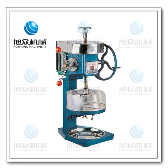 轉(zhuǎn)動(dòng)搖把,將主軸升到最高點(diǎn),放冰塊于刀盤上;轉(zhuǎn)反向動(dòng)搖搖把,放下主軸,使壓針插入冰塊;啟動(dòng)開頭進(jìn)行工作,工作一個(gè)程序后,按以上步驟重新操作后進(jìn)行第二次工作。