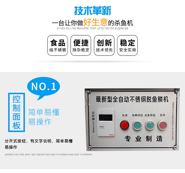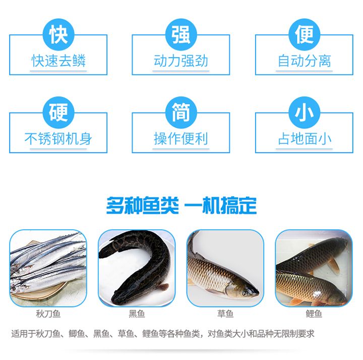 3.功能強(qiáng)大,直接實(shí)現(xiàn)去魚(yú)鱗和殺魚(yú)的工藝,生產(chǎn)效率高,產(chǎn)量大。