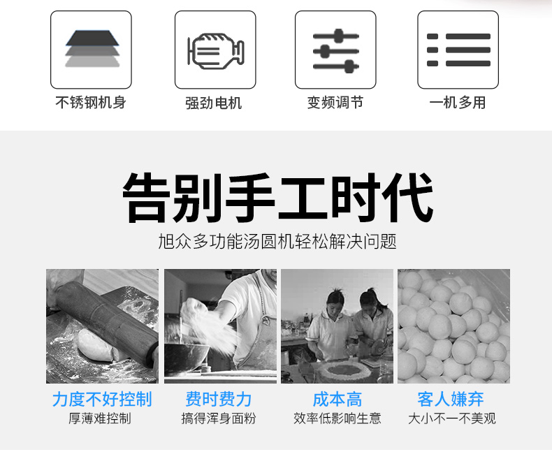 旭眾牌VFD-1200無餡湯圓機又稱珍珠湯圓機、桂花湯圓機。