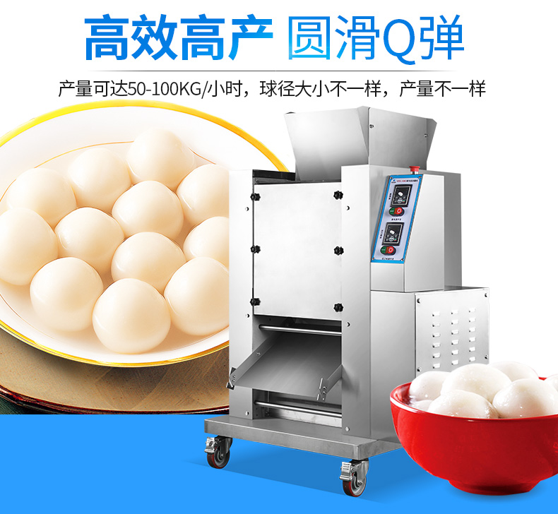 ? 本機速度高,每小時可生產(chǎn)0-120kg湯圓,球徑大小不一樣,產(chǎn)量不一樣。