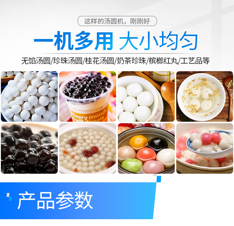 ? 本機可生產(chǎn):無餡湯圓、珍珠湯圓、桂花湯圓、奶茶所用的珍珠、檳榔紅丸、工藝品等。