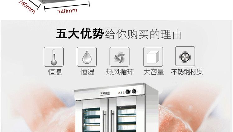 旭眾蒸籠醒發(fā)箱采用全不銹鋼制成,利用電熱管通過自動調(diào)節(jié)使箱內(nèi)熱水加熱,產(chǎn)生大量水蒸氣。使箱內(nèi)濕度達80-85%,可將溫度自動控制在35-40℃之間,形成適合發(fā)酵環(huán)境,并增設(shè)加溫干燒管及發(fā)熱片,保持箱內(nèi)溫度以及把水珠加熱霧化,使發(fā)酵過程達到很好效果,是糕點生產(chǎn)配套的理想設(shè)備。