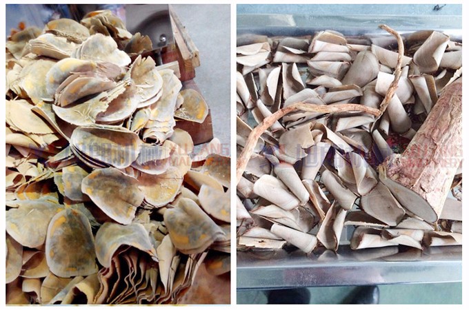 入    料:將木質(zhì)壓模取出,調(diào)整好切片厚度,開啟機械后,將物料放入進料口中即可