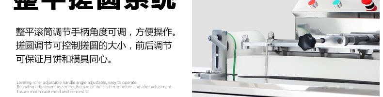 ?搓圓調(diào)節(jié)分寬度調(diào)節(jié)和前后調(diào)節(jié),寬度調(diào)節(jié)搓圓的大小,前后調(diào)節(jié)保證月餅和模具同心;